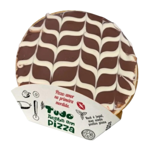 Não se contente com um só! Esta mini pizza combina a doçura do nosso chocolate branco com a intensidade do chocolate ao leite. Uma explosão de sabor e cremosidade, garantindo uma experiência indulgente a cada mordida.