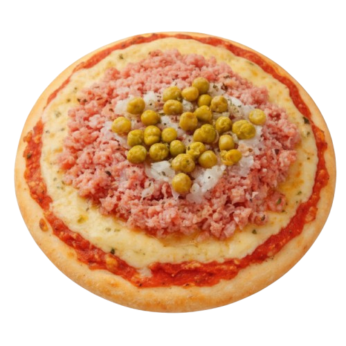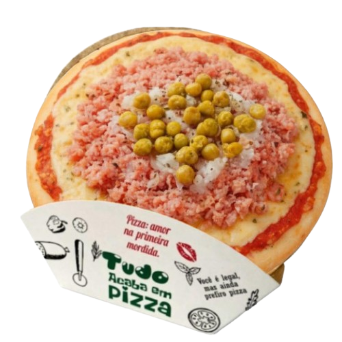Recheada com muçarela, presunto, ovo cozido, ervilha e cebola picada. Um prato completo e tradicional, ideal para quem aprecia a riqueza dos ingredientes da verdadeira pizza Portuguesa!